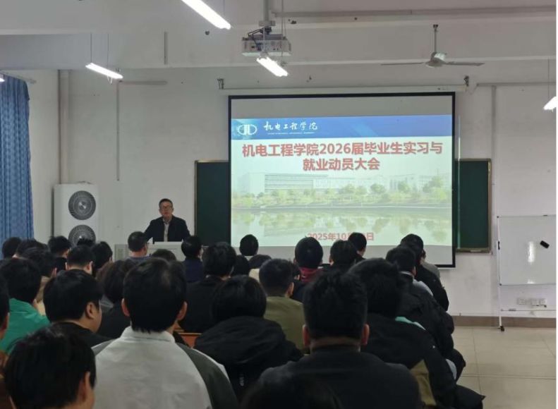 为扎实推进毕业生实习管理与就业指导工作,帮助学院毕业生明晰从校园到职场的过渡路径,2025年10月22日,机电工程学院在文津楼4508教室召开 2026届毕业生实习与就业动员大会。学院领导班子成员、产教融合中心主任、教研室正、副主任、毕业班辅导员、教学秘书、毕业班部分学生参加会议,会议由学院党委副书记徐勇(主持党委工作)主持。