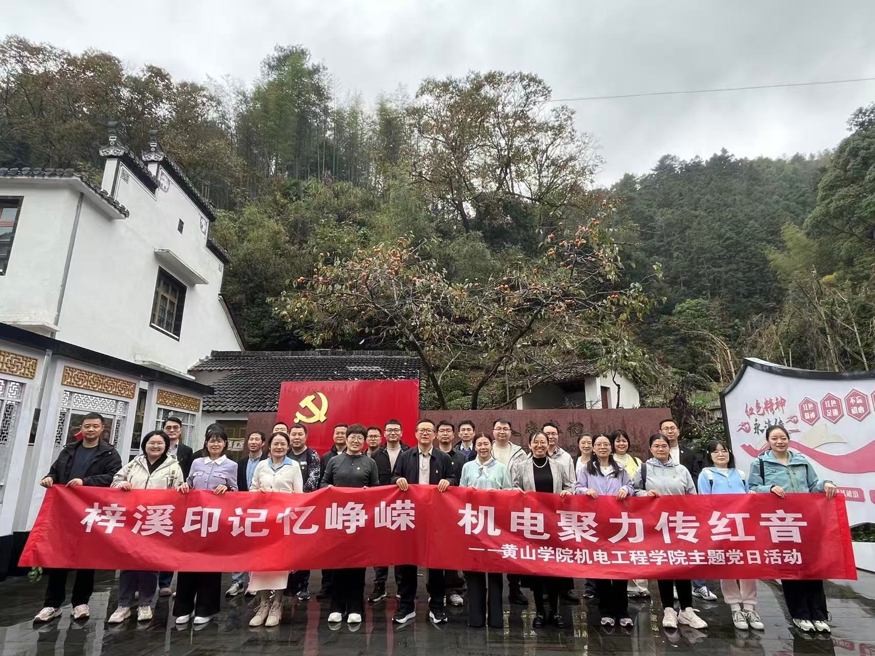 为深入学习贯彻党的二十届四中全会精神,传承红色基因,凝聚奋进力量。11月 8日,机电工程学院全体党员赴休宁县板桥乡梓坞村开展“梓溪印记忆峥嵘 机电聚力传红音”主题党日活动,在理论学习与红色浸润中接受深刻的党性洗礼。