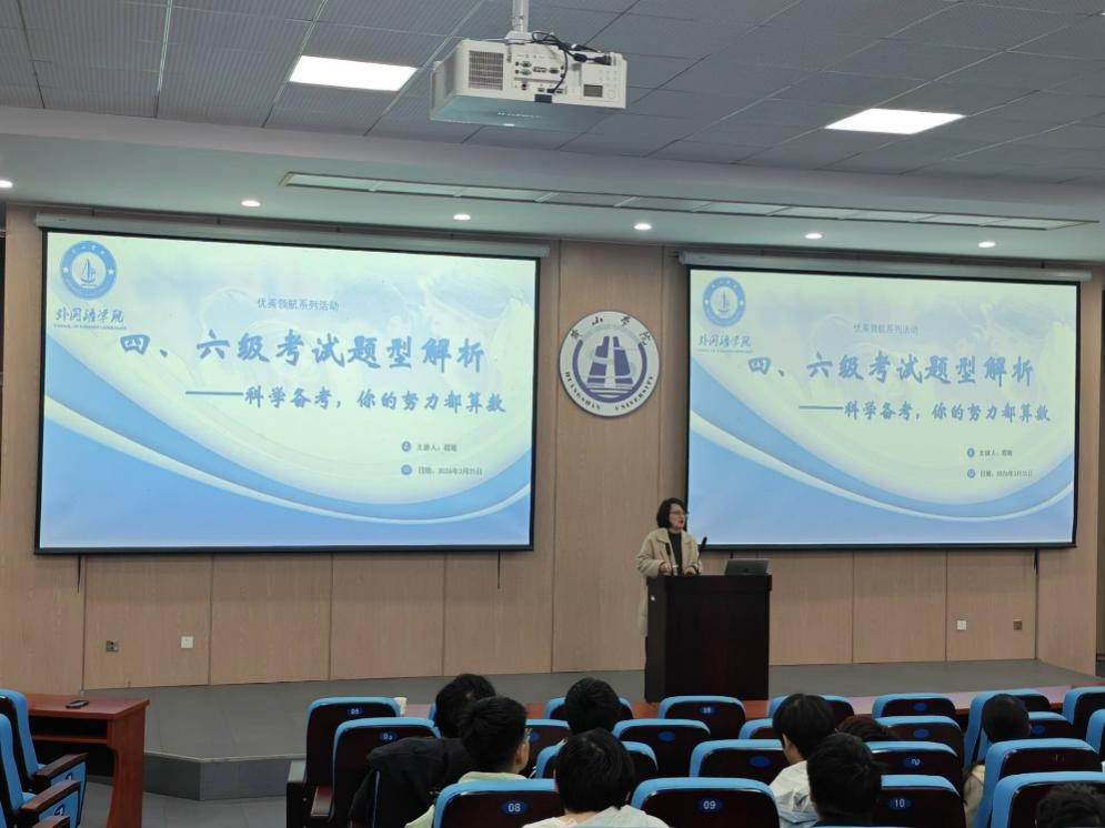 紧盯四六级备考期,专项辅导提质增效。英语四六级考试关系到学生的学业发展与职业规划,为帮助学生掌握科学的备考方法、提升应试能力,切实提高四六级考试通过率,学院组织经验丰富的英语教师开展专项辅导活动。辅导过程中,教师们紧扣四六级考试大纲,系统梳理听力、阅读、写作、翻译等核心题型的解题技巧,分析考试重点与难点,分享词汇积累、语法巩固的实用方法,同时结合历年真题进行实战讲解,针对性解决学生备考中存在的共性问题与薄弱环节。此外,老师们还为学生制定合理的备考计划,开展应试心态指导,鼓励学生克服畏难情绪,坚持常态化学习,以良好的状态迎接考试。专项辅导的开展,有效填补了学生备考短板,营造了浓厚的备考氛围,为学生顺利通过四六级考试提供了有力支撑。